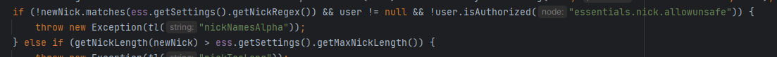 Before you can put a name for example with a "." and the only solution was to give the permission: essentials.nick.allowunsafe