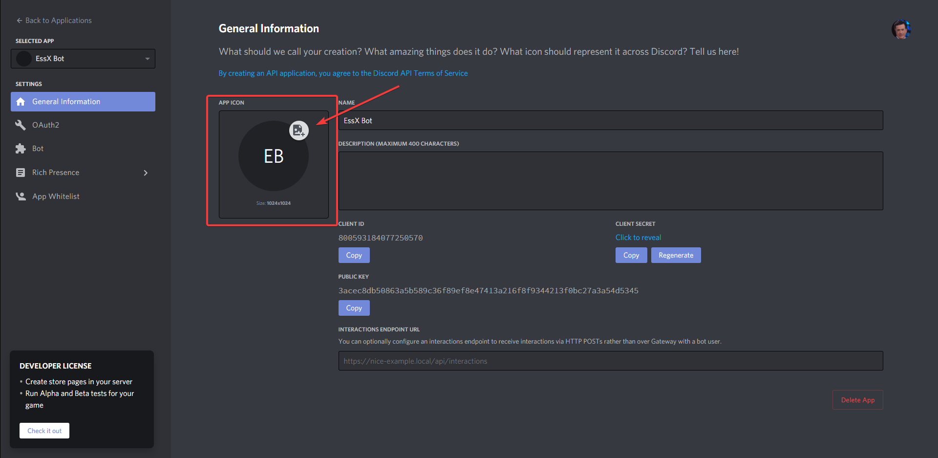 - Optionally, you can set an icon for your application as it will be the icon for the bot too.