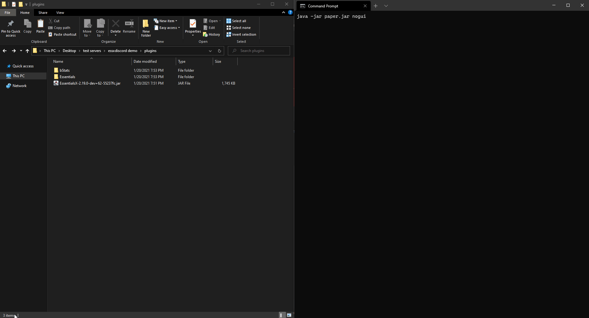 - You've successfully copied all the necessary IDs needed for a basic setup. Next up is generating the default config for EssentialsX Discord, so you can start setting it up! Do this by putting the EssentialsX Discord jar (you can download it here if you do not already have one) in your plugins folder, starting your server, and then stopping it as soon as it finishes starting up.