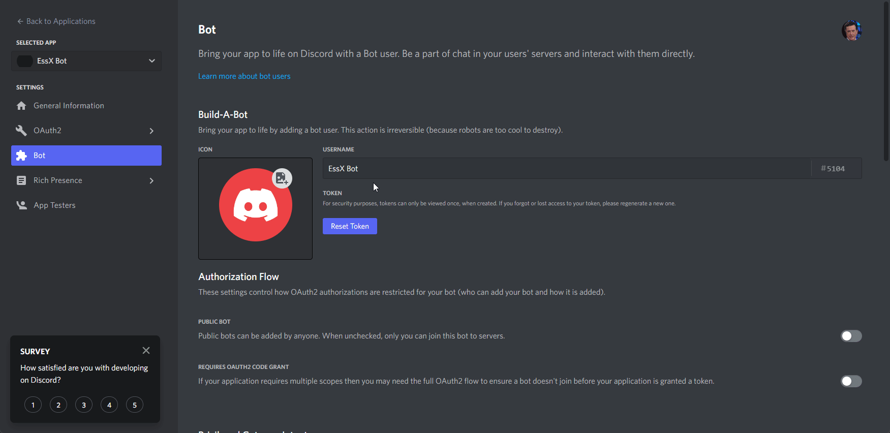 - Finally, you'll need to copy your bot's token and save it for a later step. To copy your bot's token, click the blue "Reset Token" button right of your bot's icon, then click "Yes, do it!", and finally click "Copy". Make sure to save it for a later step.