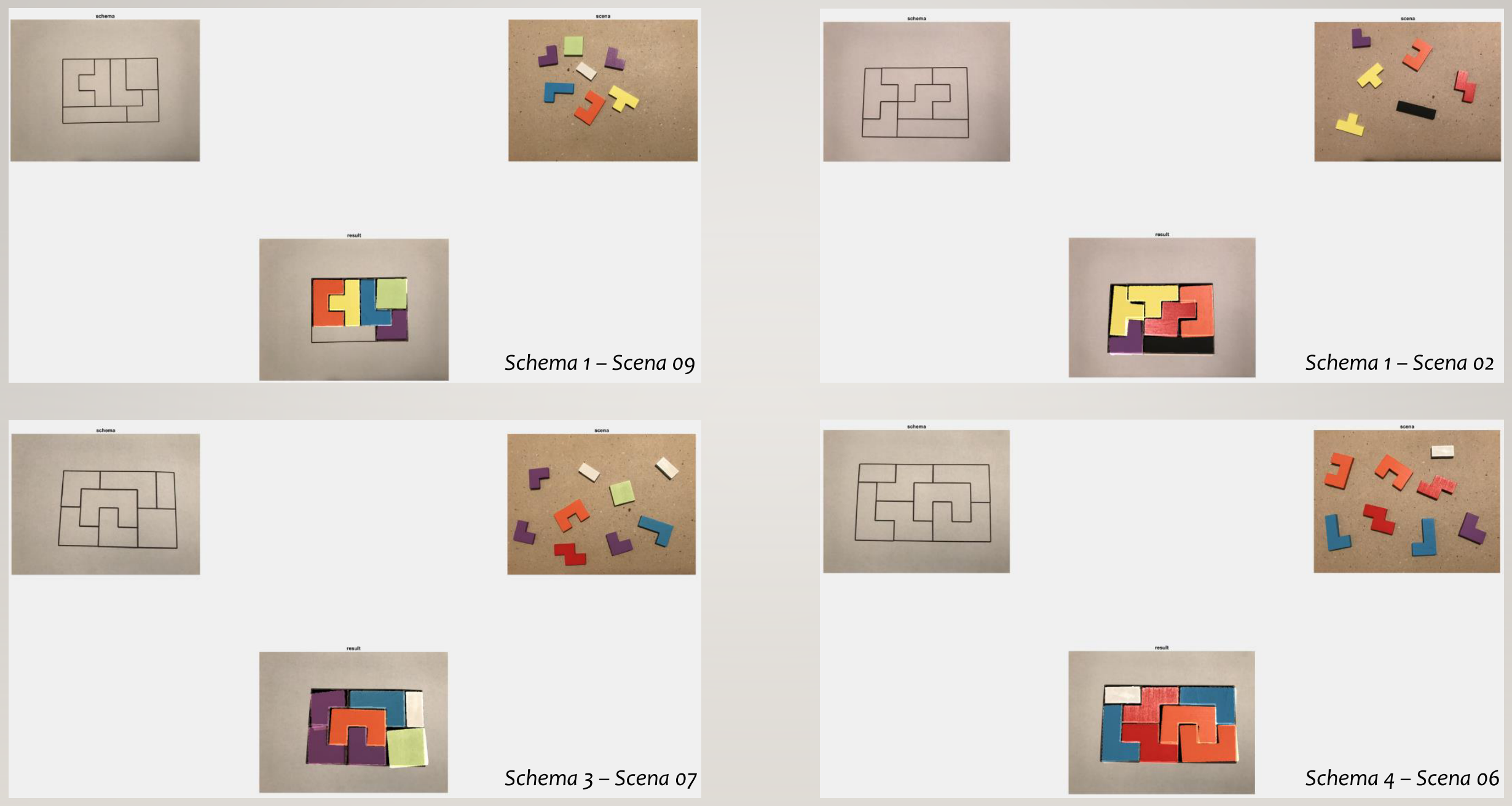 Successivamente é stato scritto un algoritmo che calcola la correlazione per ogni coppia tetraminoScena-tetraminoSchema e l'angolo di rotazione per ogni oggetto