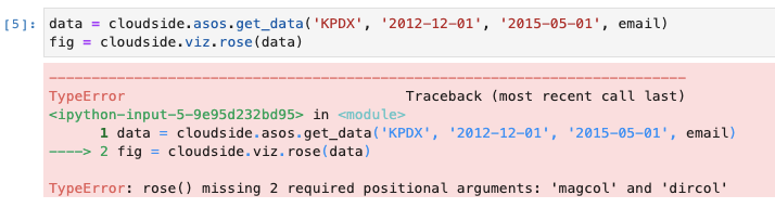 When running the readme example, I get