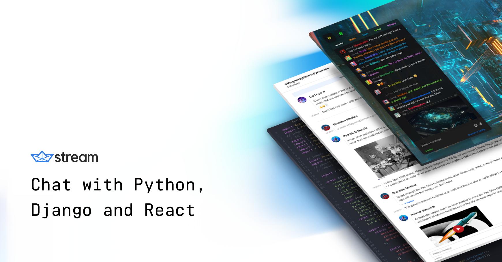 Building chat with Python can be a time consuming task. Stream Chat provides the necessary SDK and underlying infrastructure to allow anyone to build chat with Python.