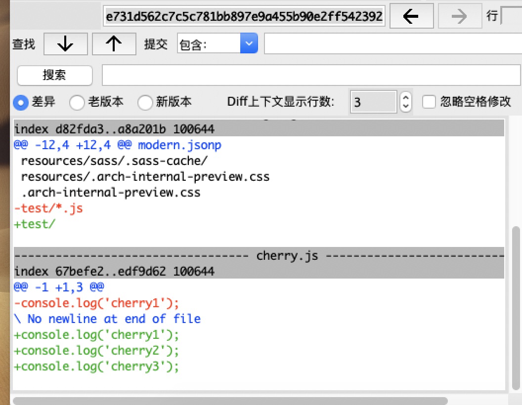 如上图,本次提交改动了2个地方;那个在使用本次的commitId做cherry-pick的时候,只会把这2处改动与当前分支合并。