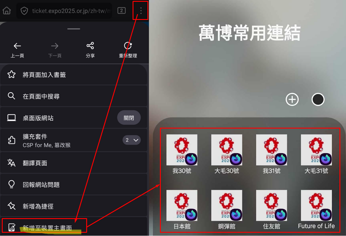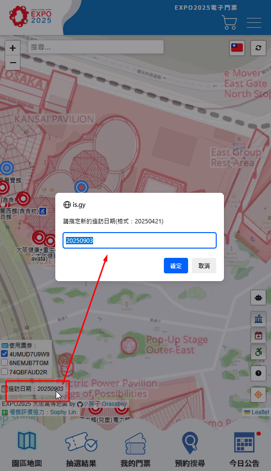 - 前往 https://grassboy.github.io/EXPO2025/ui.fix.user.js 安裝 Expo2025 UI Fix 的網站腳本