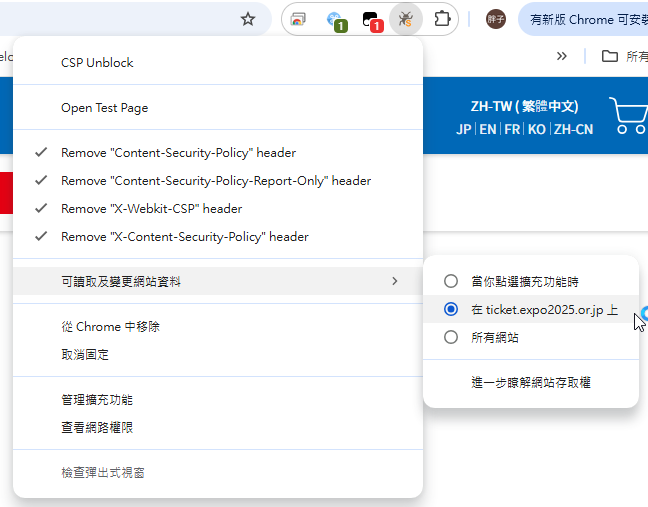 - 萬博官網有設定 Content-Security-Policy 要有辦法繞過去