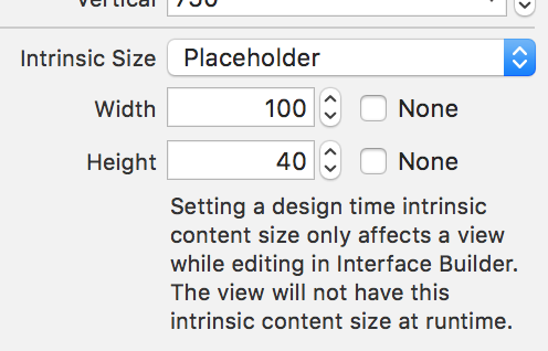 - Make sure that you don't have a constraint for its width (it shrinks)--you might need to set the Intrinsic Content Size to "Placeholder" in your xib to avoid errors