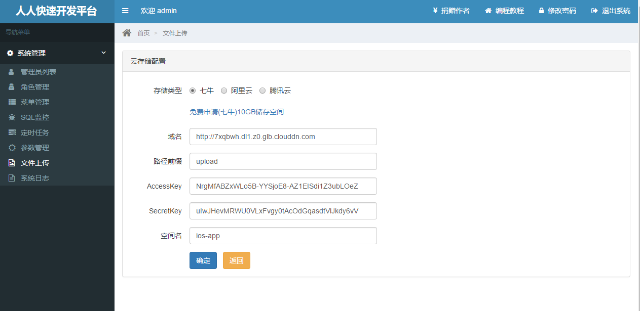 - 引入云存储服务,已支持:七牛云、阿里云、腾讯云等