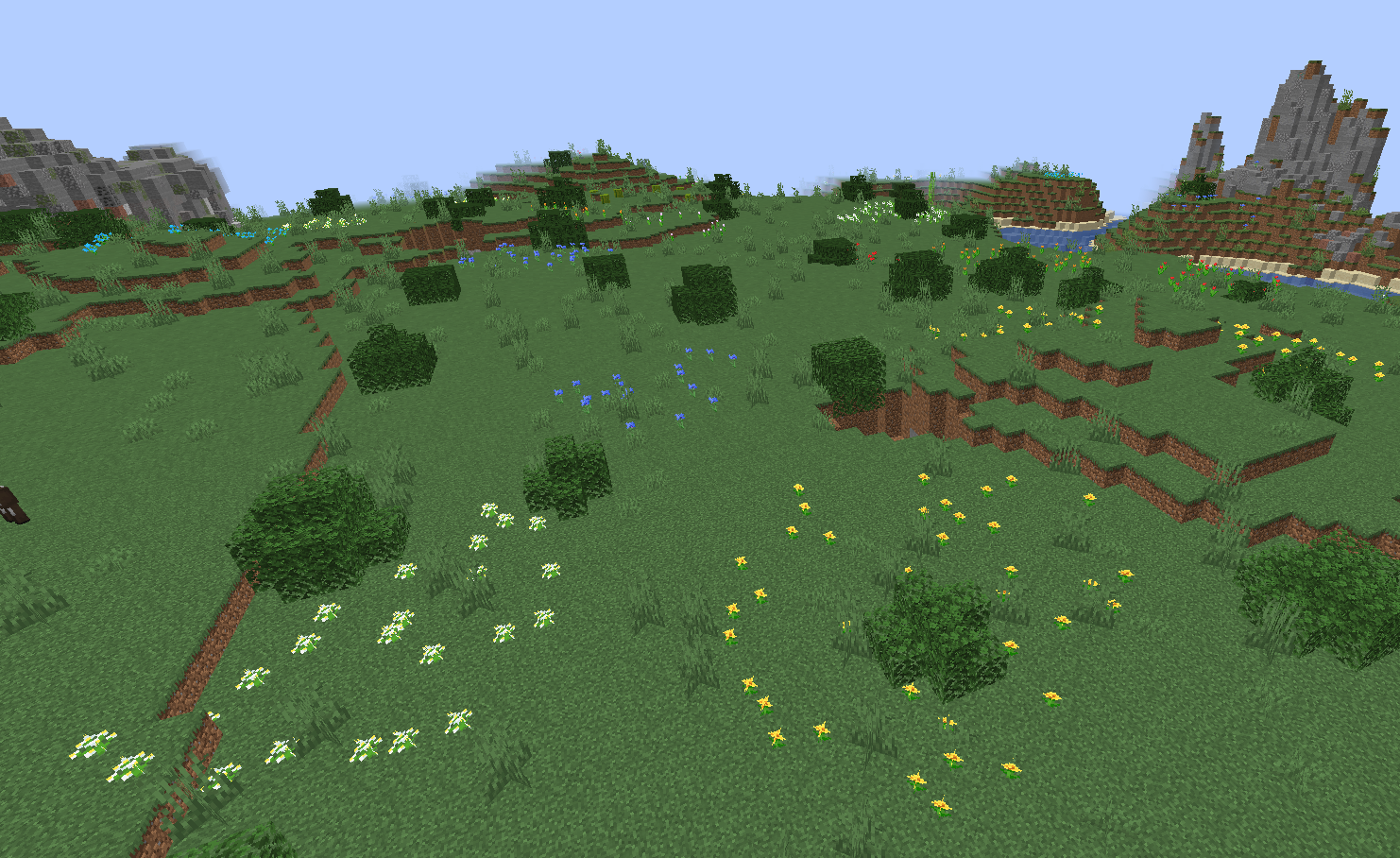 Normal plains, but with no trees, and large clusters of flowers