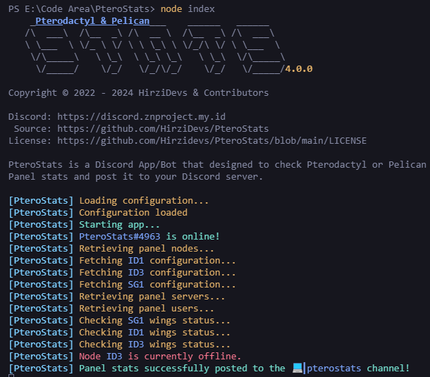 PteroStats is a Discord App/Bot designed to check Pterodactyl or Pelican Panel stats and post it to your Discord server.