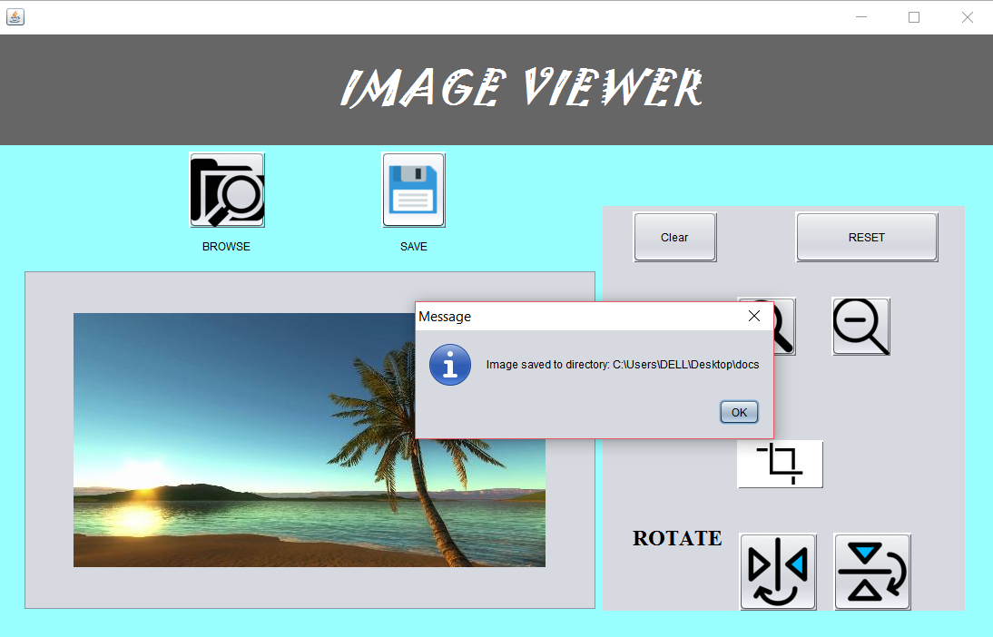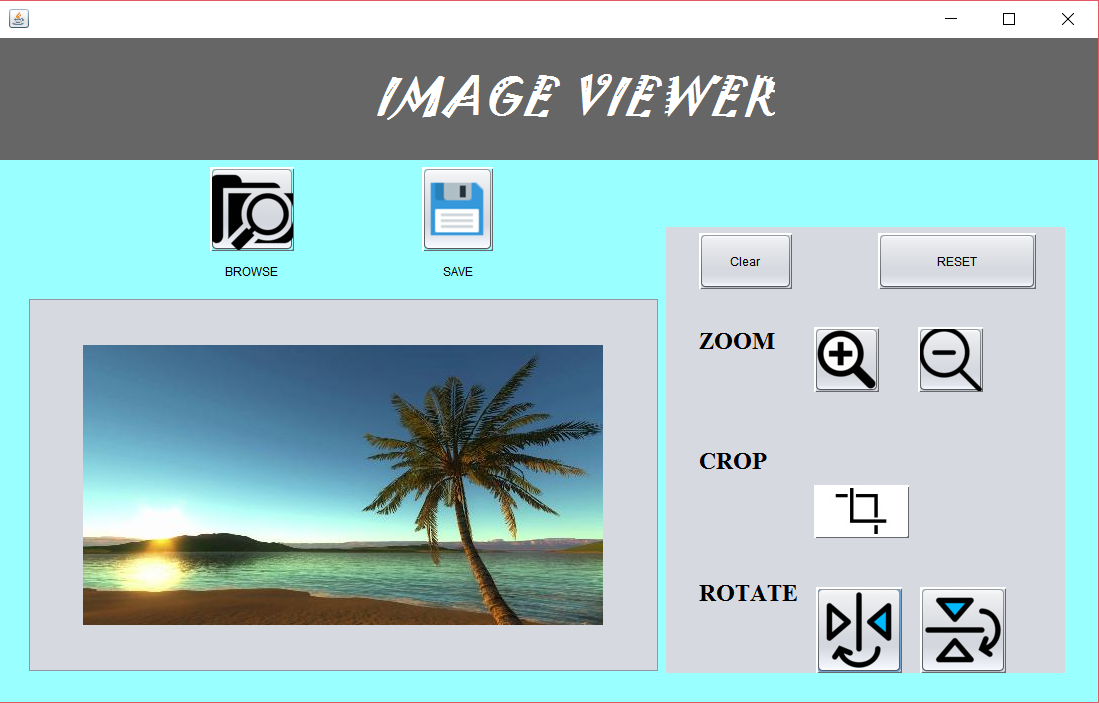This is a simple Image Viewer GUI which can zoom 🔍 and crop ✂️ images. This Project was made using Java in Netbeans IDE using swings.