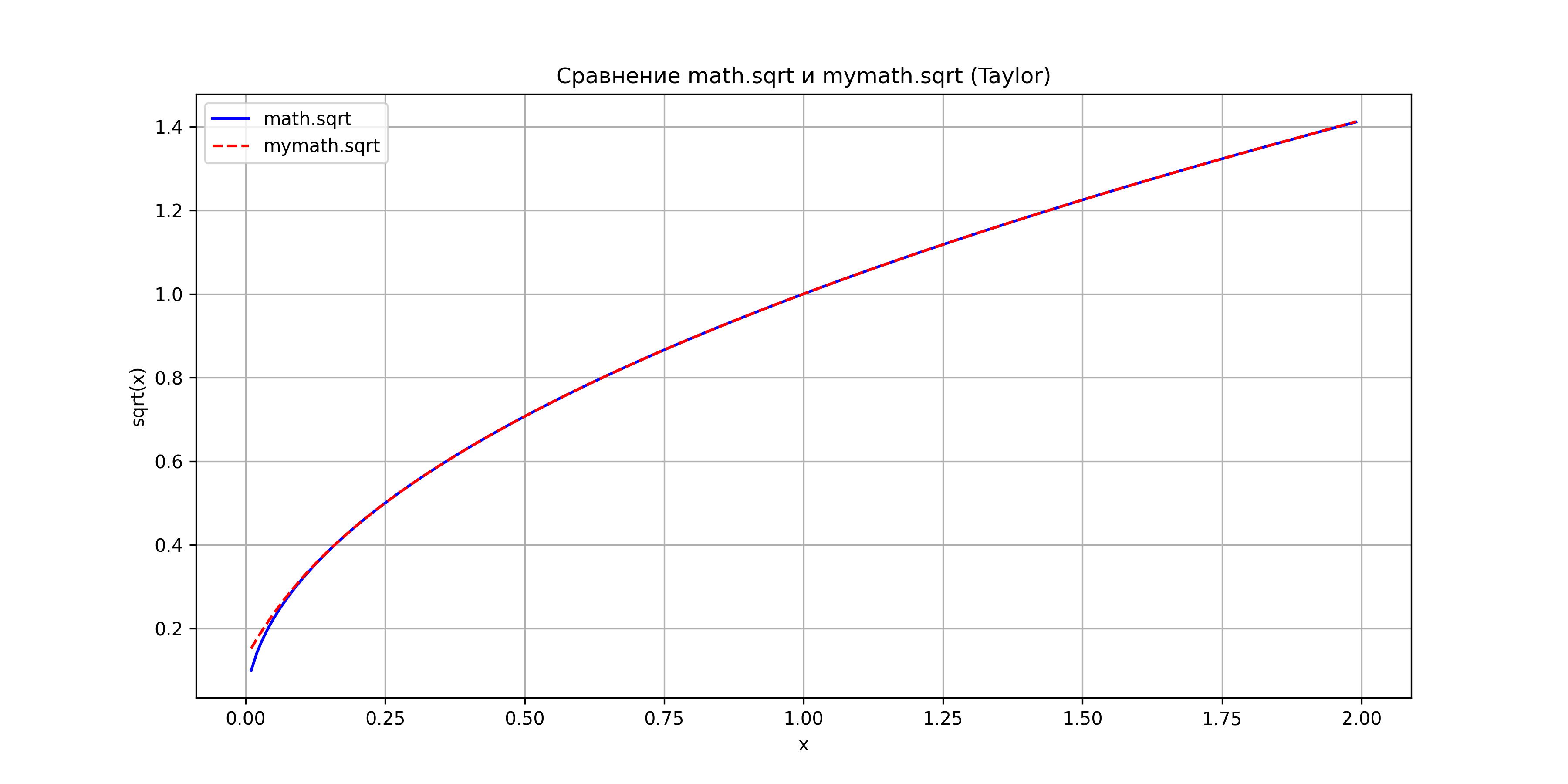 Comparison of mymath.sqrt vs math.sqrt.