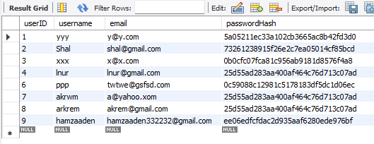- password hashing using MD5 encryption