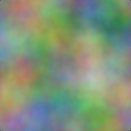 This snippet of code creates a kernel and an image sized 256x256. A function chain is set up by creating 3 sub-modules for the red, green and blue channels of a color. Each channel is based on a valueBasis() function that is scaled to the range 0,1 by multiplying by 0.5 and adding 0.5. (Note here that the snippet is using one of CKernel's built-in constants, in this case the constant 0.5, which are provided for convenience for commonly used constants such as 0, 1, 0.5, pi, e, and so forth).