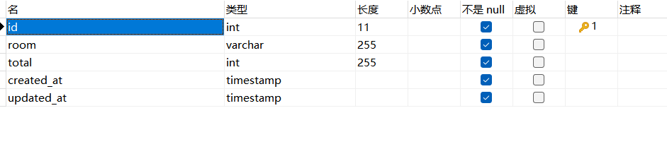 - room: 房间号,最大长度为255个字符,使用utf8mb4字符集和utf8mb4_unicode_ci排序规则。