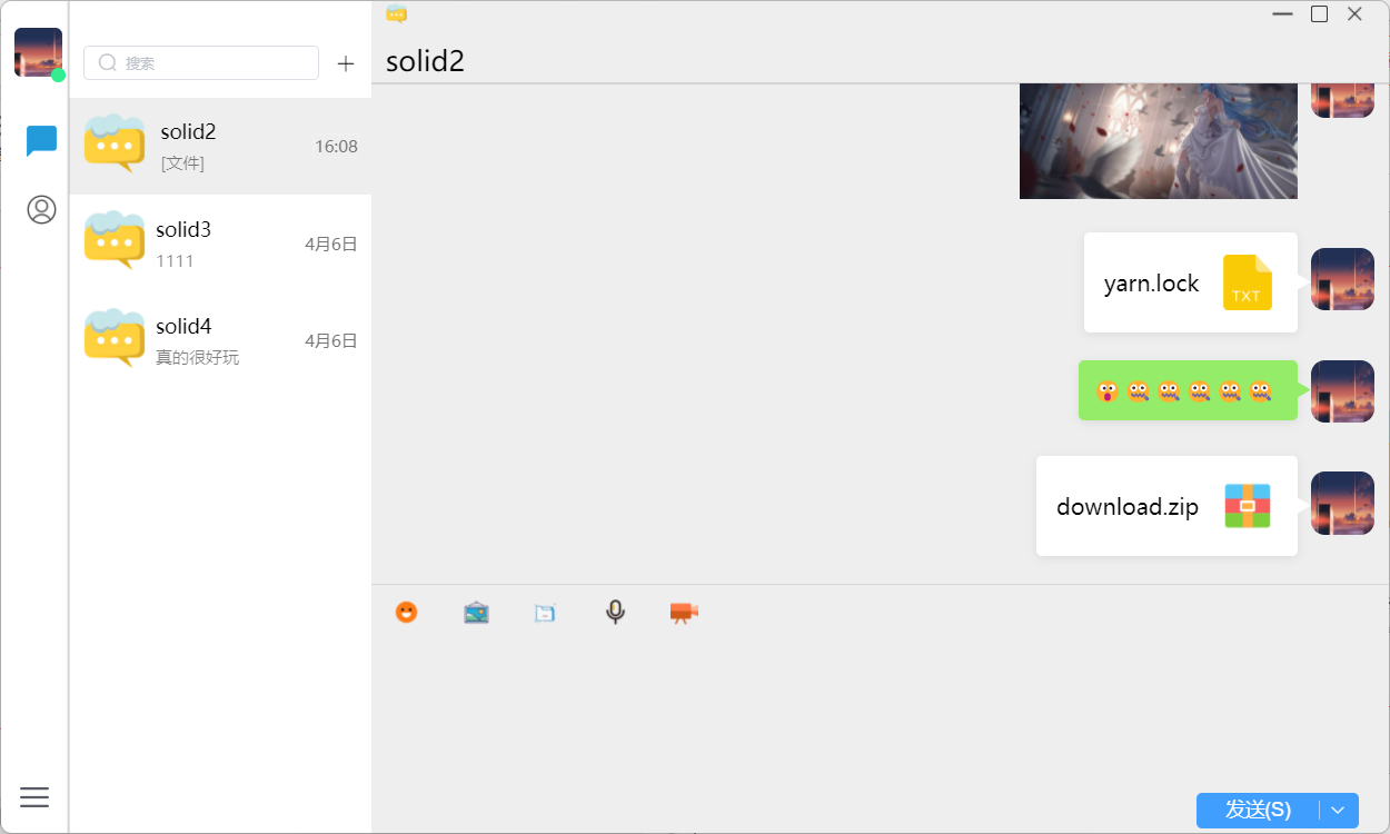 ,后端会发送所有与之相关的所有历史记录,前端会根据消息的类型来进行相对应的展示,(音视频记录不会展示,可以做但是不想做😼😼😼),当发送或接收一条消息会自动更新列表栏