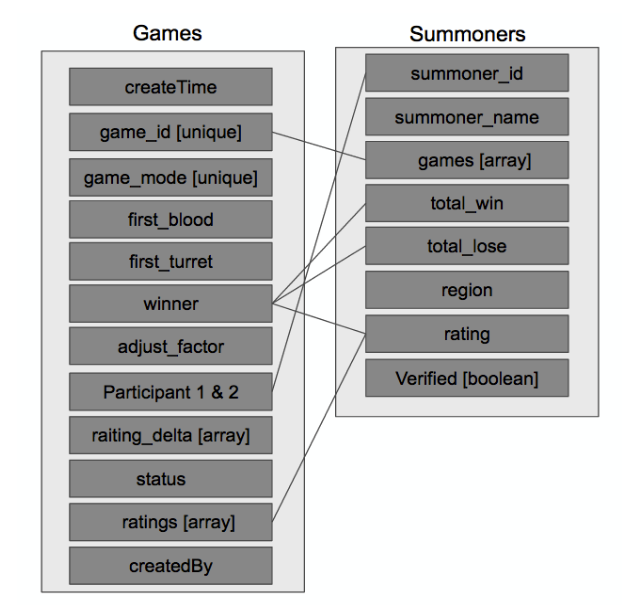 The other person who receives the link will be able join the game room. After both participants join the game room, scheduled job with the Node will update data in the [Games_db] from the backend, where the job runs on an designated interval to check against Riot current_game endpoint for game info.