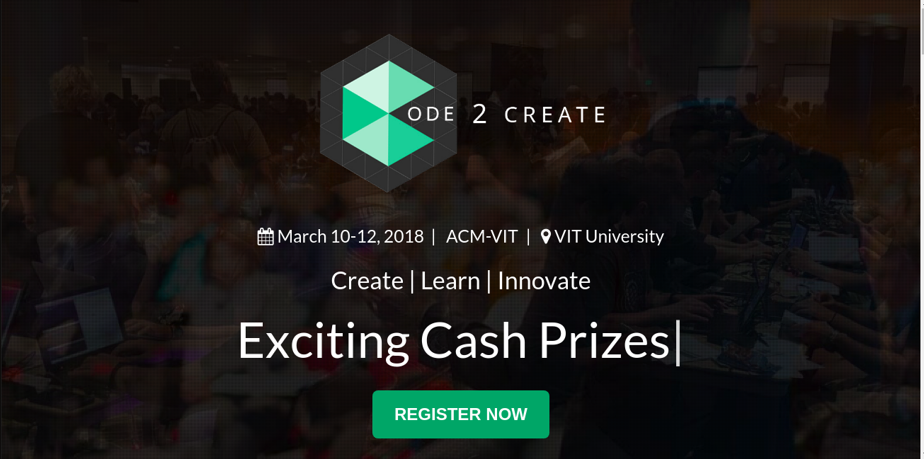 Code2Create - Hackathon organised by ACM-VIT C2C is one of the biggest hackathons in VIT University. It is organised annually by ACM-VIT. How to install - clone this repo - npm install - sails lift Screenshots