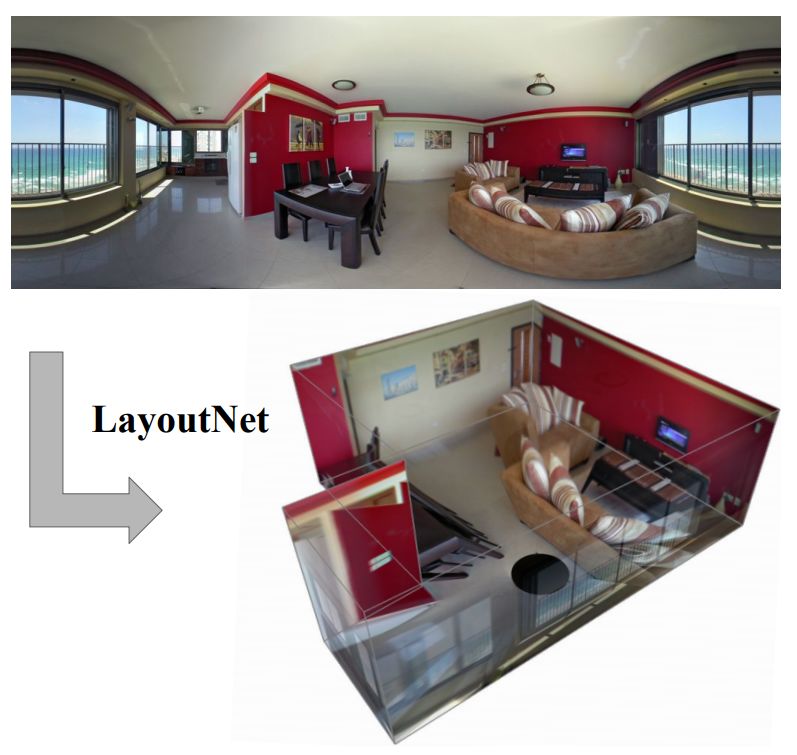 LayoutNet: Reconstructing the 3D Room Layout from a Single RGB Image (2018 CVPR) [Paper] [Code]