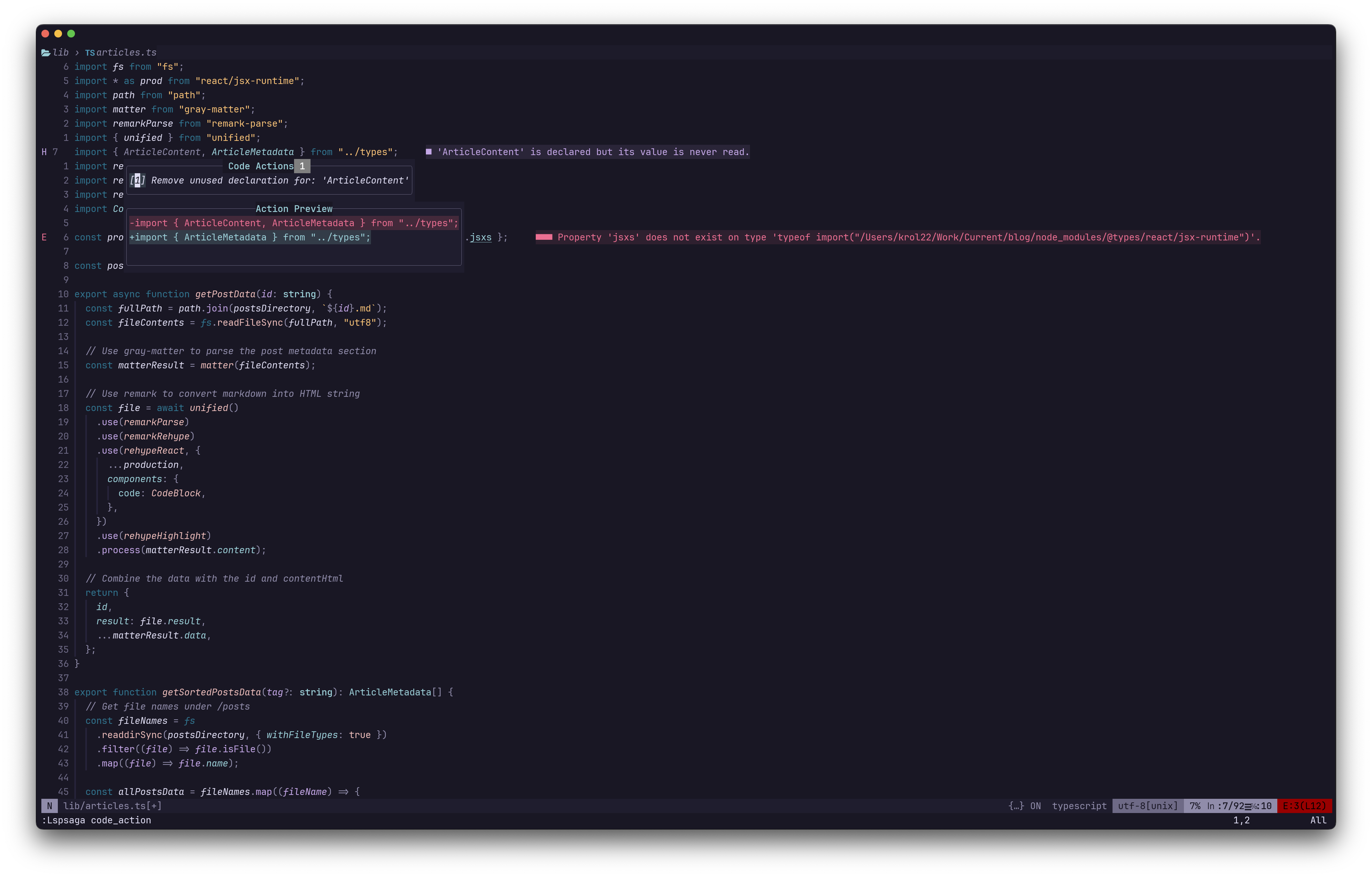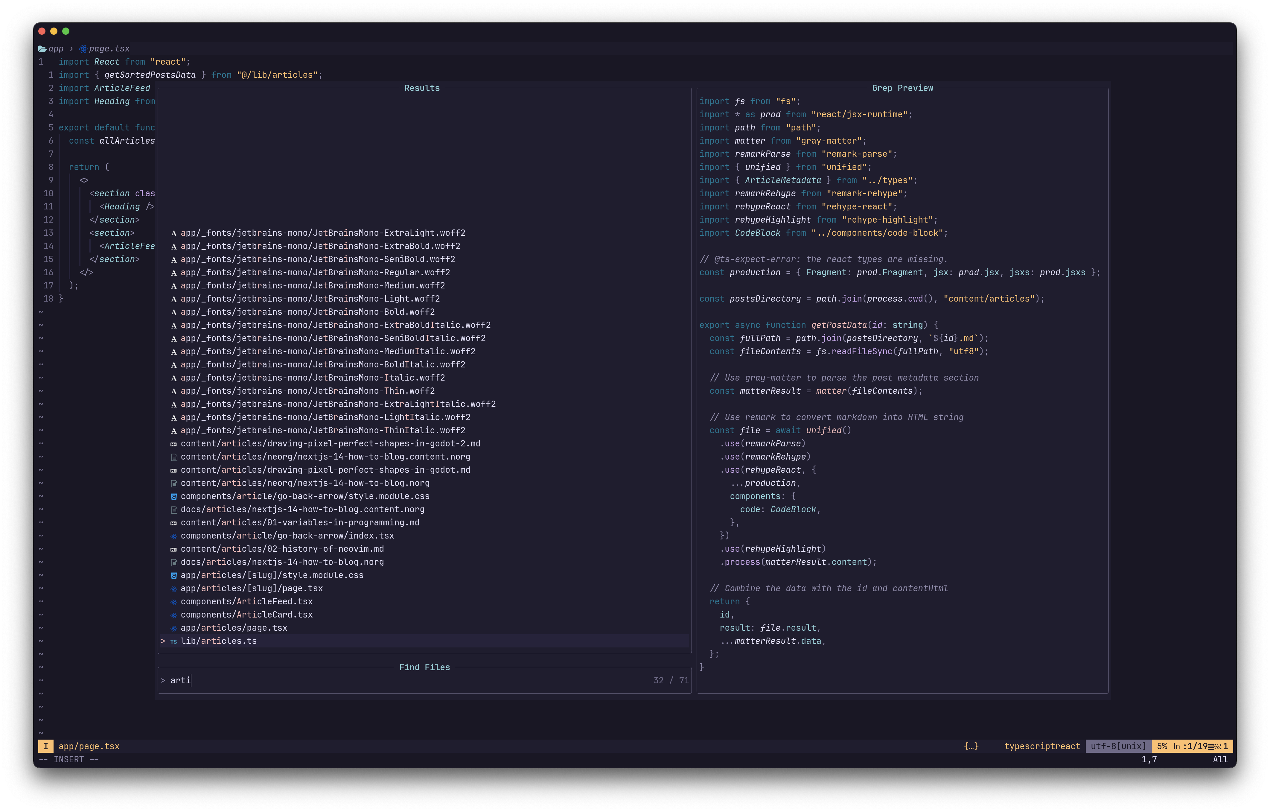 nvim-config Configured for Webdev, Ruby, Gdscript, Golang and Rust. Always WIP. Screenshots Alpha.lua: Startuptime: Autocompletion: LSP Telescope