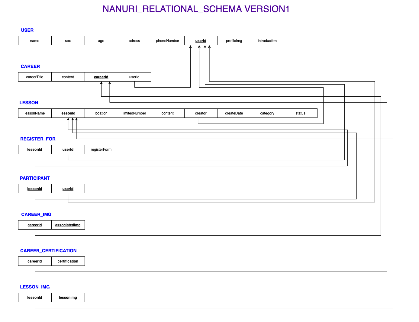 Relational Schema는 The ER-Relational Mapping Algorithm을 기반으로 작성하였으며, 다음을 목표로 하였습니다.