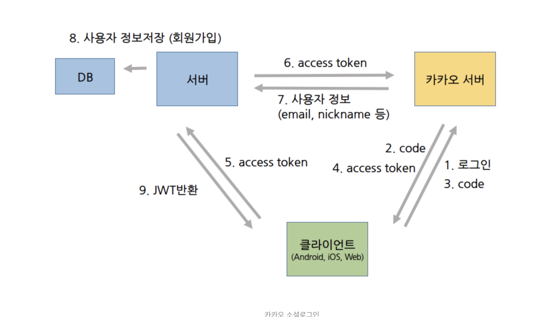 - Third party authentication provider의 OAuth 서버로 로그인 요청후 Thrid Party 의 토큰을 발급 받아, 백엔드에 전달 (서비스 로그인 요청)
