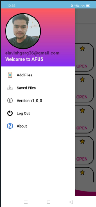 It is more a pdf saver app in which user can save his/her pdf,pdf will be displayed in order of ascending order of time, user can save the pdf by clicking on the star icon,and the pdf will be saved in saved pdf folder in the app, user can update his/her profile image,can share the pdf with other social apps.