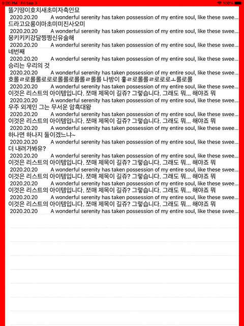 시도3: 테이블뷰가 전체 화면을 다 채우도록 구현tableView.frame = view.bounds