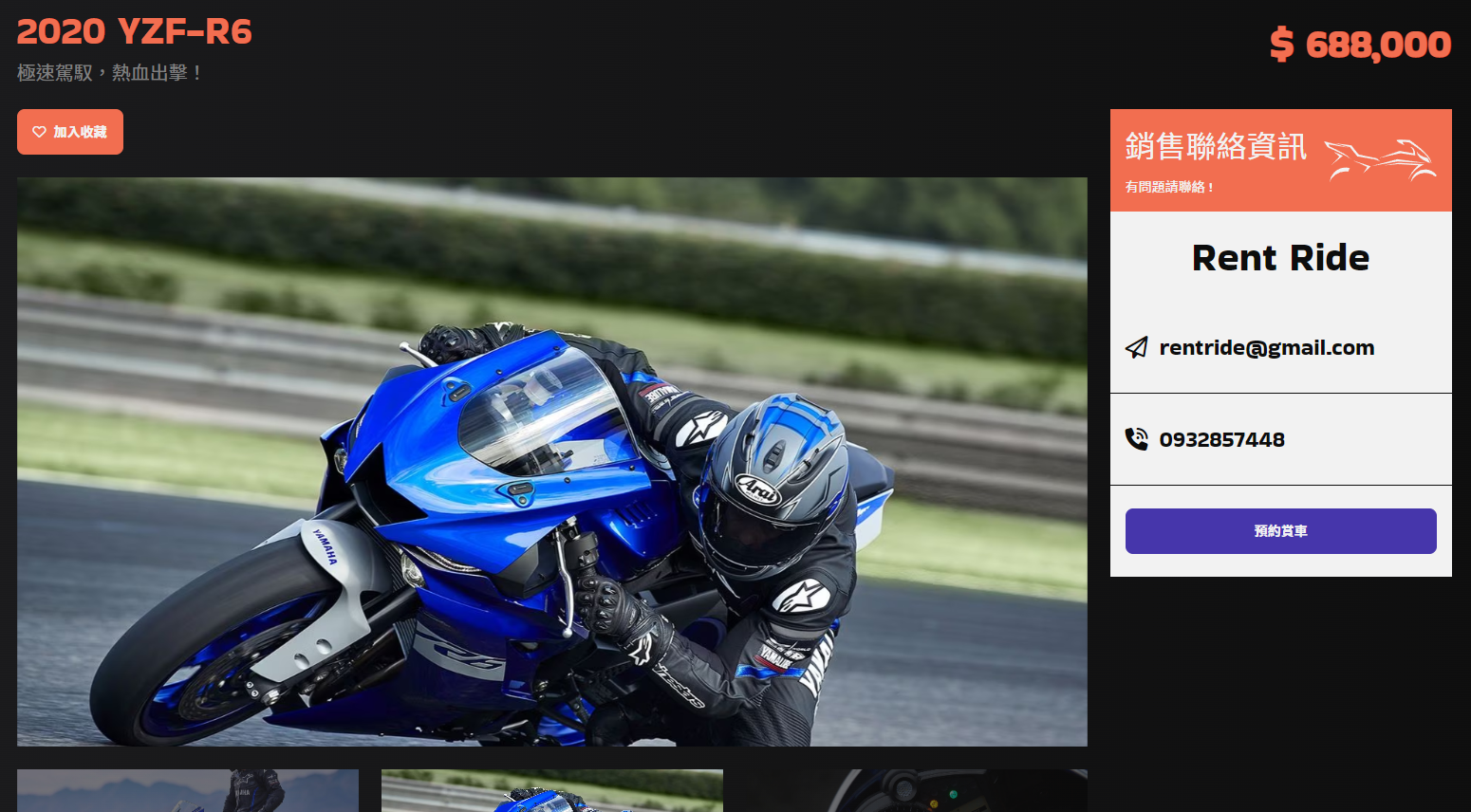 歡迎來到 Rent Ride,一個以 Vue3 + Pinia 製作的重機租車網