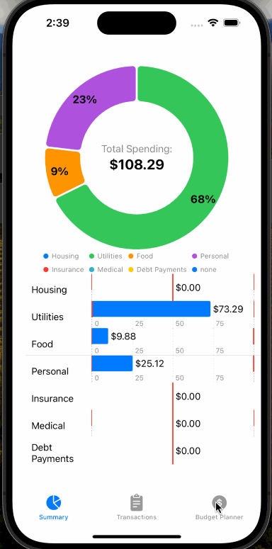 An app that will allow users to manage their spendings. Users can set budgets, itemize their transactions and visualize their spending.