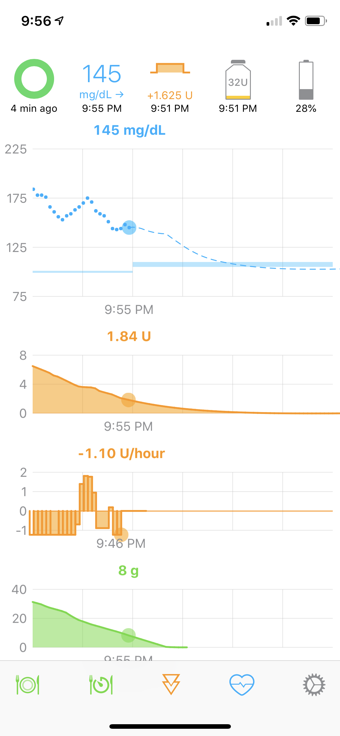 I would have expected that the basal graph be updated as soon as the temporary basal was set on the pump. While not an undue burden to look at both the graph and the current rate set at the top of the screen, I might just glance at the graph to see what loop has been doing with my basal. I have come to expect the next 30 minutes of set temp basal (in case of a disconnect) to be graphed out as well and this graph indicates that I was set to get a neutral or near neutral basal, where the reality is I was set at +1.45 u/h. I did not expect a 10 minute delay in a graph update, especially with a green loop.
