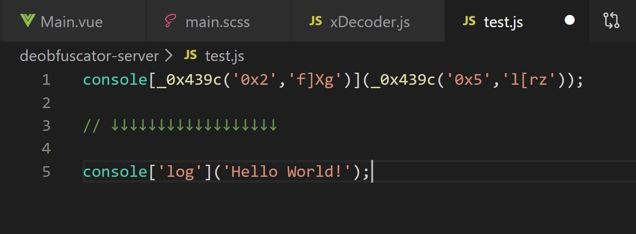javascript-deobfuscator JavaScript Deobfuscation Tool Demo: https://deo.sigr.io An example of deobfuscation Project setup npm install Compiles and hot-reloads for development npm run serve Compiles and minifies for production npm run build Lints and fixes files npm run lint Customize configuration See Configuration Reference. Web client & decoding server Web client and decoding server run using firebase hosting & cloud functions. Run test server on local firebase serve Deploy to firebase firebase deploy