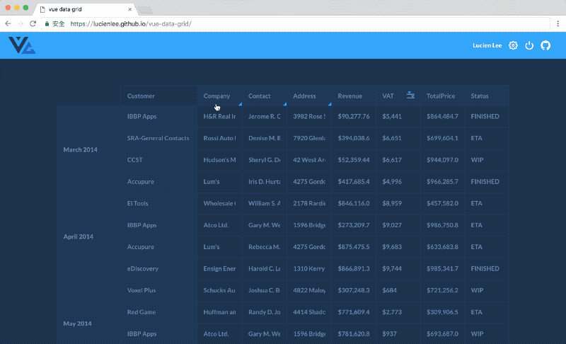 An example(live demo) that complex table interaction in Vue.js, which is rebounded the design by Virgil Pana