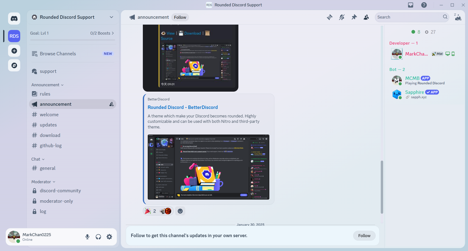Method 1 (Local theme): Download the latest RoundedDiscord.theme.css