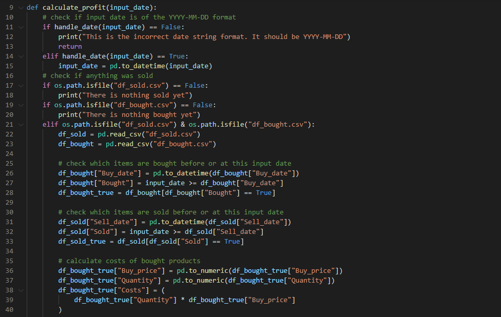 python main.py sell --product Orange --sell-price 21 --quantity 3 --sell-date 2025-10-01