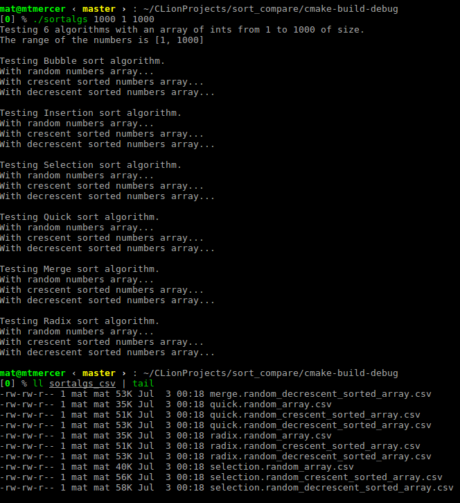 This project tests sort algorithms execution time by nanoseconds based in an N size array that increments from 1 to a max size specified by command line arguments.