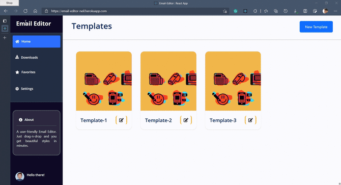 new templatebutton will direct the user to the/template/{id}route.- The page will load an empty editor.