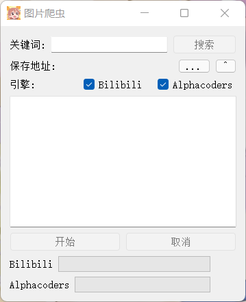 IMGCrawler 一个简单的图片爬虫机器💡 有的时候想保存一些图片 但是一张张的保存太慢 还得是需要一个爬虫的 目前针对bilibili专栏关键词搜索 使用Requests/Pyqt搭建交互页面👁️