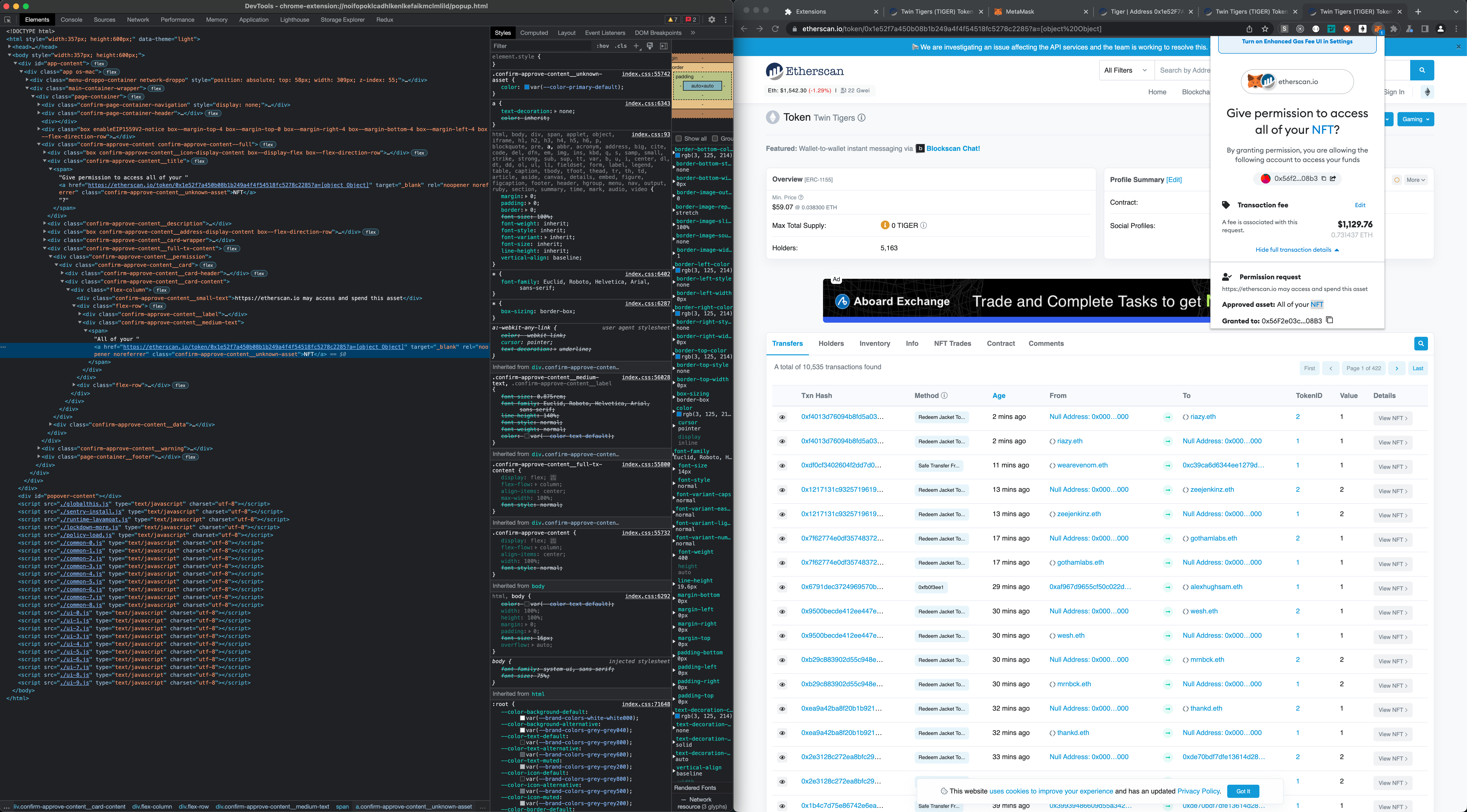 The link appears as follows, with an object appended to the end: https://etherscan.io/token/0x1e52f7a450b08b1b249a4f4f54518fc5278c2285?a=[object Object]