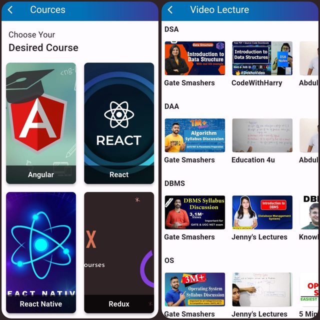 Lectures - Explore the "Lectures" section to find educational lectures on various subjects. Browse through the available lectures, such as Gate Smashers, Algo Expert, and Coding Wizard. Select a lecture to watch or listen to the content.
