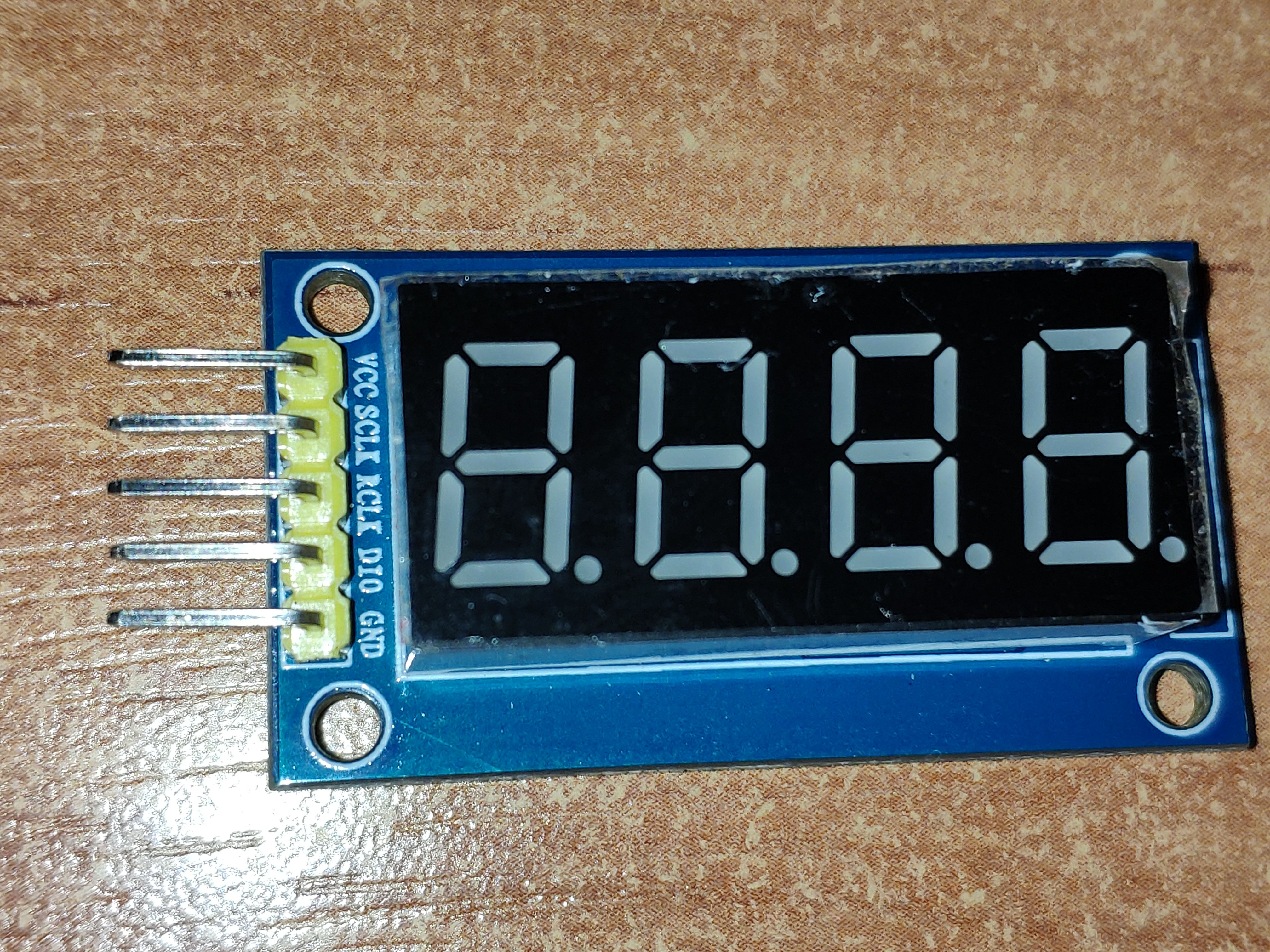This example uses SegDisp library dependent on GPIO library. SegDisp library can be used to drive a 4-digit 8-segment LED display module based on two 75HC595 shift registers connected in series (images below).