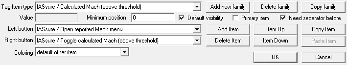 is configured for either the Mach number or IAS, the plugin will display the respective tag item in the color selected. - If no