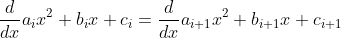 for every quadratic equation. Now we need a relation between the curves to conclude the unknowns, let's think about the differentiation what if we differentiate the curve equation ? We will get an equation that gives us the slope at any point on the curve. Actually we can notice that every two curves have a joint point between them, so we can assume that the slope at that point is the same. So we can conclude that the differentiation of the curvei