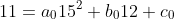 equations. Luckily we already know two points values for every equation for ex:lest assume the first point is (10, 11) and the second one is (12, 15) so we have