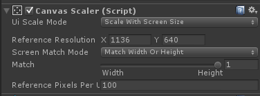 在这里,我建议使用Scale With Width Or Height这种Scale模式,同时,由于大多数游戏是横屏游戏,通过使用高度固定,宽度随之变化的模式。这样我们就可以以一个固定的高度进行UI设计,只需要考虑UI在水平尺度上的延伸就可以了。