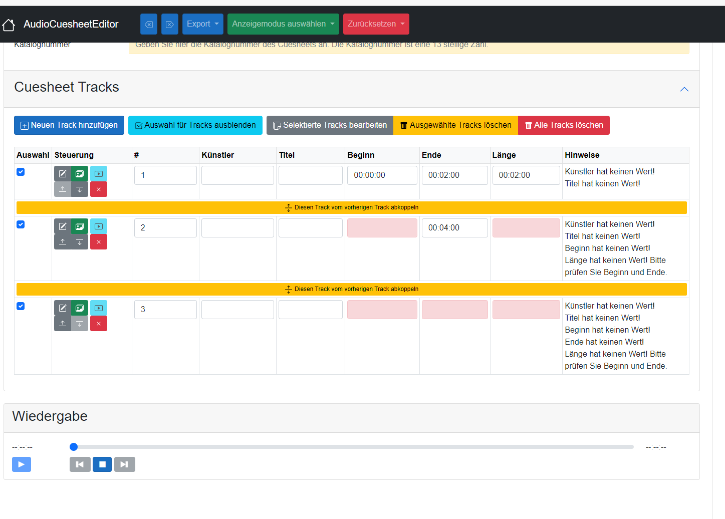 Undoing changes multiple times does'nt work. If you bulk edit tracks, set the length and undo, the undo is not always done.