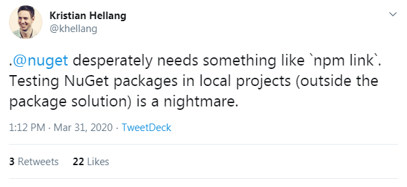 Its difficult for package authors to test their package while in development. Some context: https://twitter.com/khellang/status/1244892768717209600