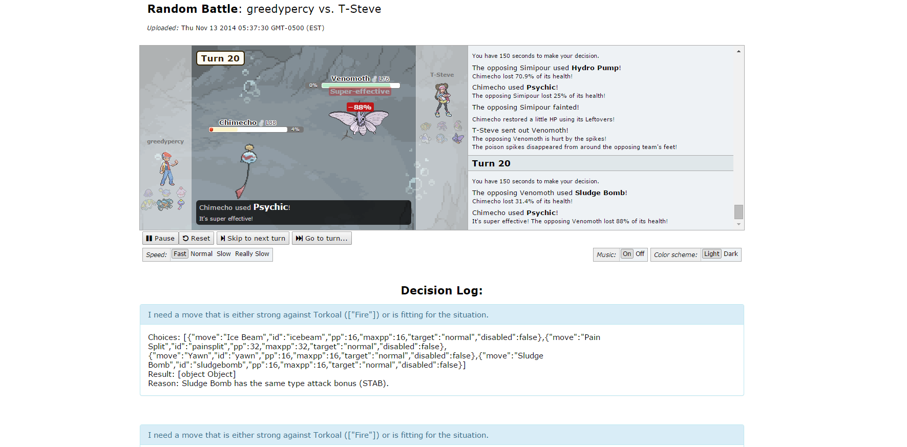 Percymon is a Pokemon battling AI that runs on the Pokemon Showdown server. Percymon is built using Node.js.