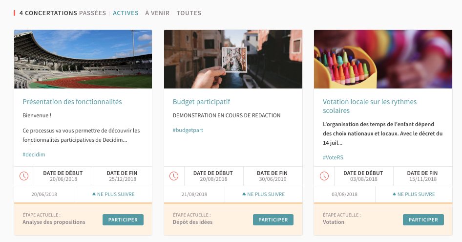 So far the CTA button text is always "Participer":