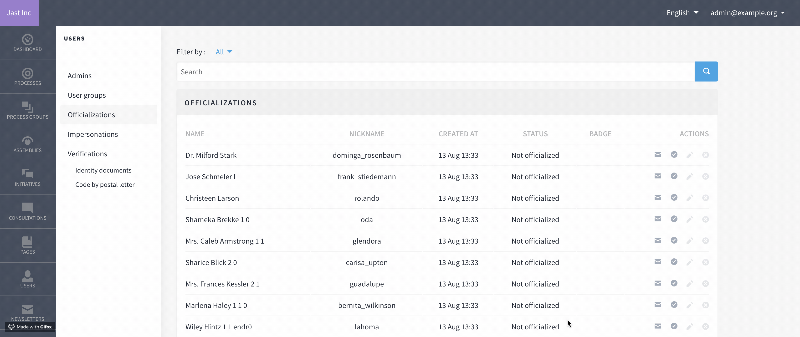 The administrator can start a conversation directly from the back office with a user.